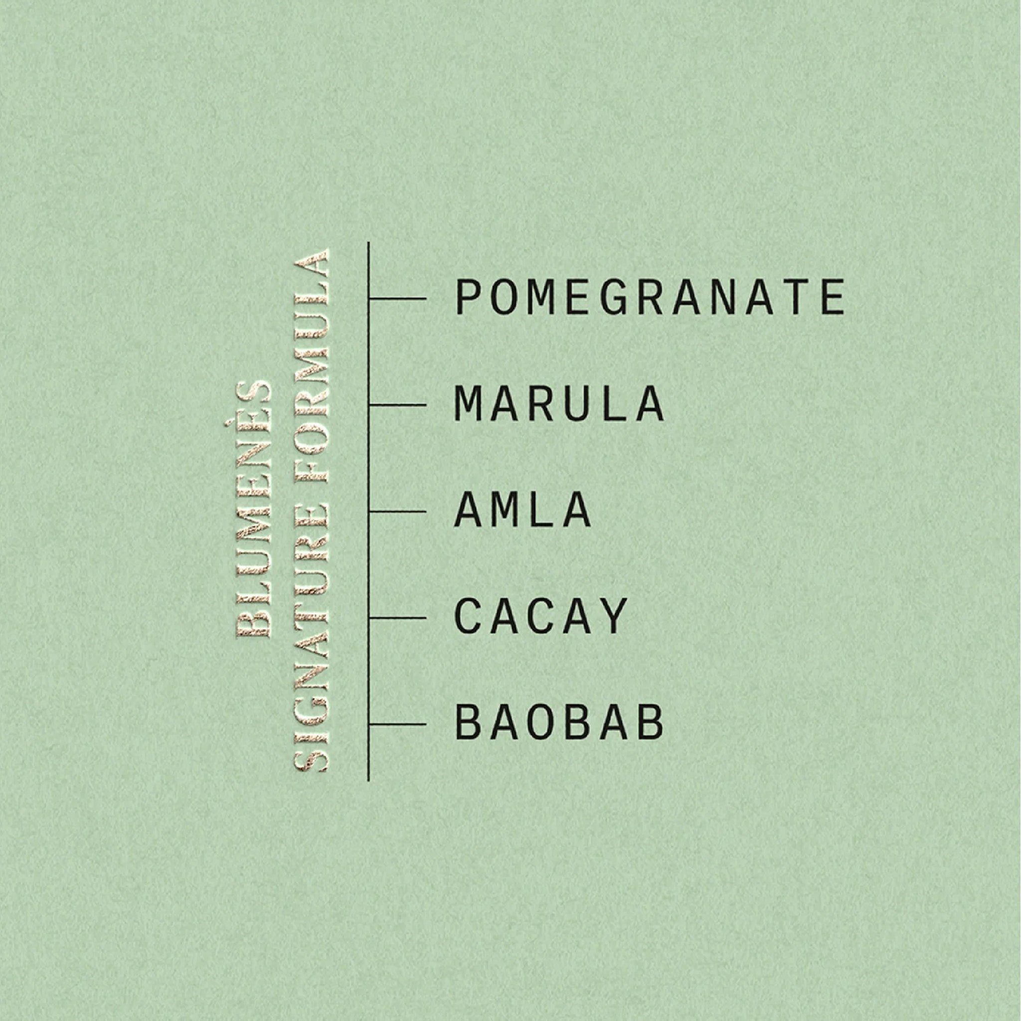 Eye Contact combines powerful anti-aging, hydrating, and brightening ingredients. The advanced microalgae-based retinol alternative promotes skin renewal and reduces wrinkles without irritation. The multi-weight hyaluronic acid complex ensures long-lasting hydration, while the skin-identical lipid blend repairs the skin’s protective barrier. Niacinamide helps brighten the skin, reduce inflammation, and smooth texture. Additionally, the Blumenes Signature Formula—featuring Pomegranate, Baobab, Amla, Marula, and Cacay oils—nourishes the delicate eye area, providing antioxidants and essential fatty acids for added hydration and radiance.