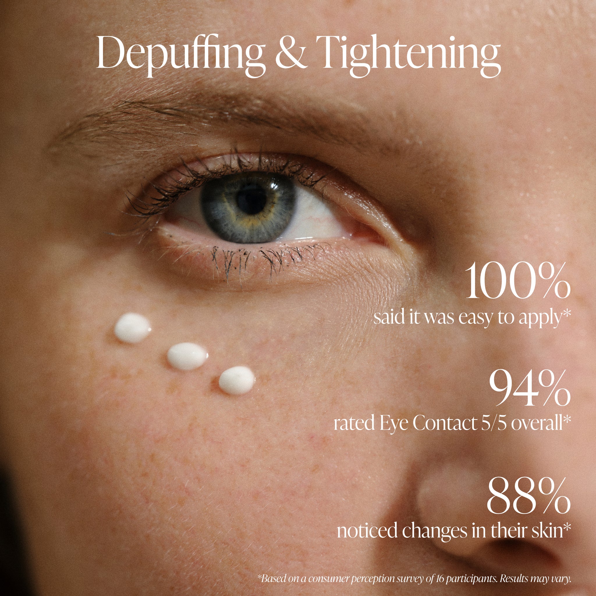 Eye Contact is suitable for all skin types, including sensitive skin. The advanced microalgae-based retinol alternative delivers anti-aging benefits without irritation, making it safe for those with sensitive skin. The multi-weight hyaluronic acid complex hydrates dry skin, while the lightweight texture of the formula ensures it won't clog pores, making it ideal for oily or combination skin. Niacinamide helps control excess oil production and soothes redness, ensuring all skin types benefit from this gentle, hydrating formula.