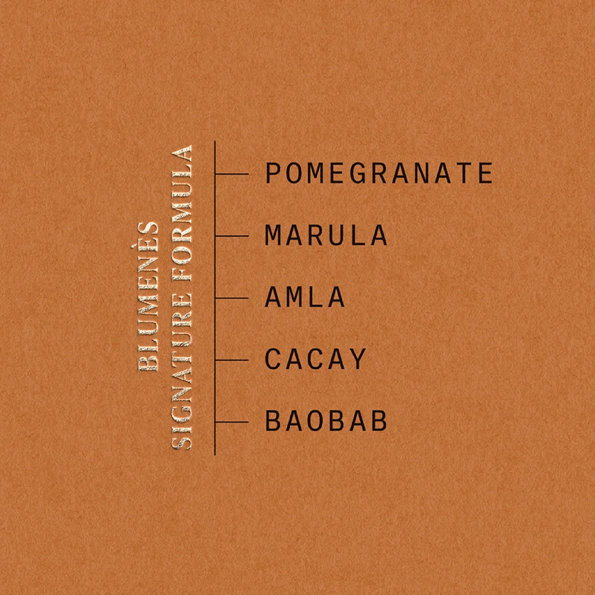 Squalane: Lightweight and deeply hydrating, it helps to balance moisture levels without clogging pores. Sea Buckthorn Oil: Rich in vitamins and fatty acids, it helps to brighten the complexion and protect the skin from environmental damage. Pomegranate Seed Oil: Packed with antioxidants, it helps promote collagen production and reduce signs of aging. Baobab and Marula Oils: Provide deep hydration and nourishment, restoring elasticity and reducing inflammation. Cacay Oil: A natural source of retinol, it helps smooth the skin and reduce the appearance of fine lines and wrinkles. Full Spectrum Hemp Extract: Known for its calming and anti-inflammatory properties, it helps soothe irritated or sensitive skin.