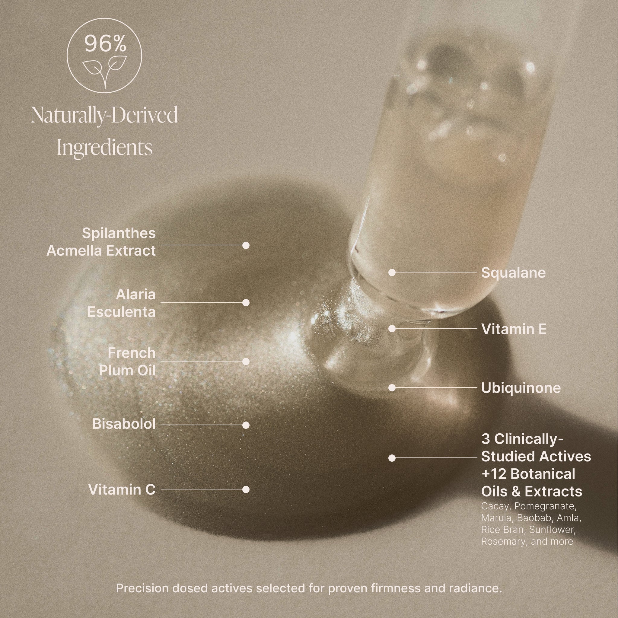 A high performance radiance serum designed to refine texture, brighten tone, and support visible firmness. Powered by stable oil soluble Vitamin C, marine algae, and Spilanthes Acmella to smooth, lift, and restore a luminous, even looking complexion.