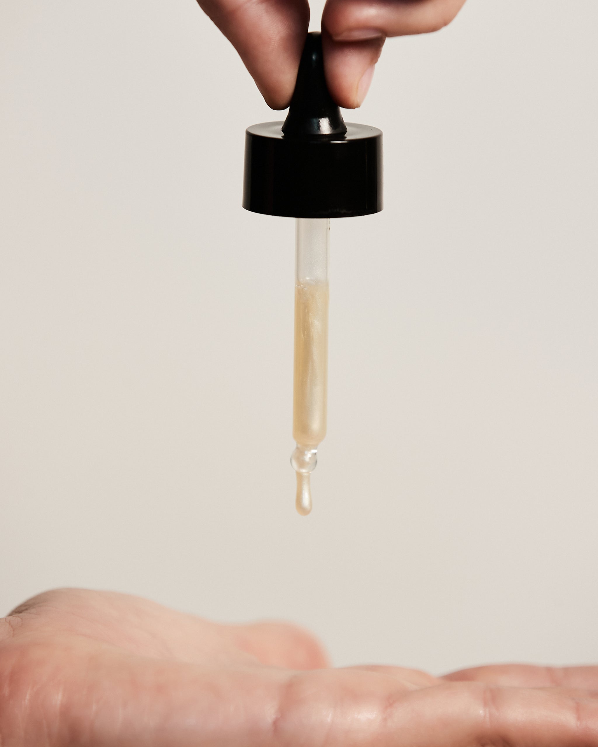 1. On clean, dry skin, dispense 3–5 drops and warm between your palms.